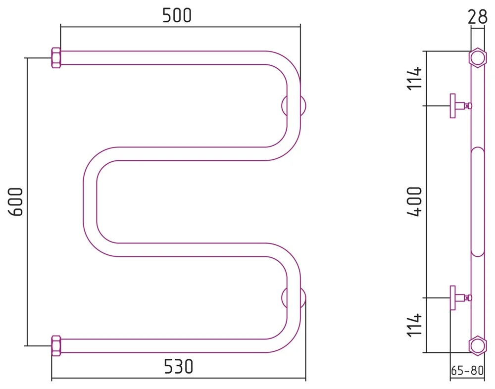 Полотенцесушитель водяной Сунержа Ш-образный 600х500 31-0014-6050 Матовый черный