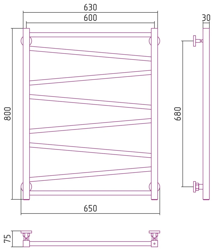 Полотенцесушитель водяной Сунержа Сирокко 800х600 00-0253-8060 Без покрытия