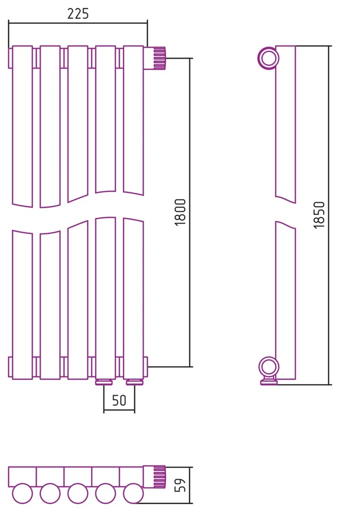 Радиатор Сунержа Эстет-1 EU50 правый 1800х225 5 секций 30-0311-1805 Матовый белый