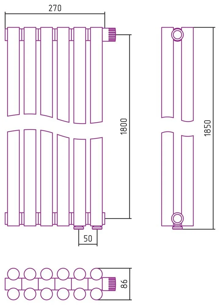 Радиатор Сунержа Эстет-11 EU50 1800х270 6 секций 12-0312-1806 Белый