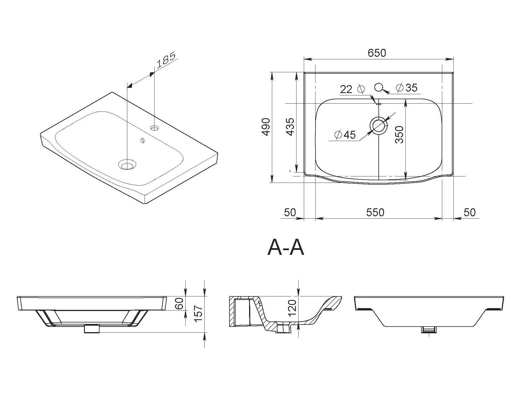 Раковина AM.PM Like M80WCC0652WG мебельная, керамическая, 65 см, встраиваемая, белый