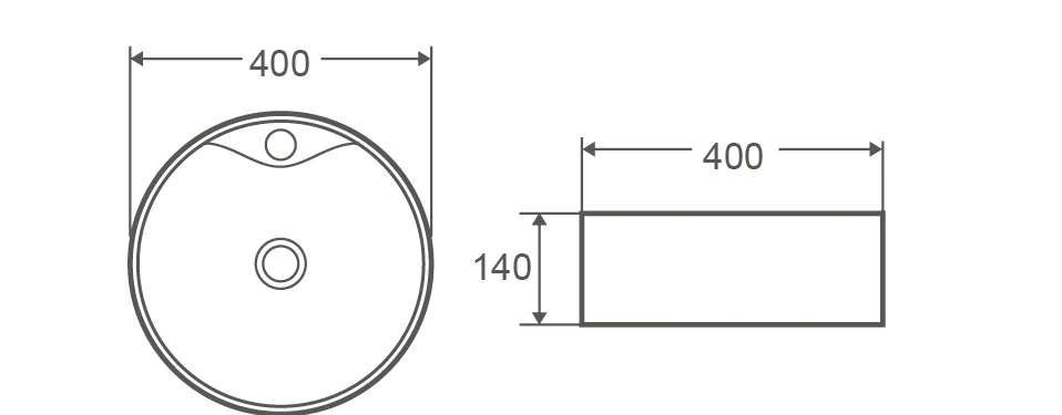 Раковина AQUAme AQM5009 настольная с отверстием под смеситель. 400x400x140
