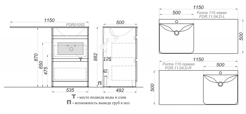 Раковина AQWELLA Forma 115 R FOR.11.04.D-R