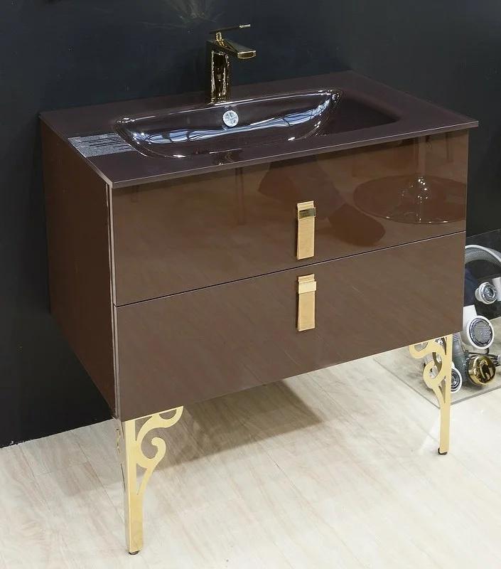 Раковина Armadi Art 852-080-DB стекло 80см моноблок DARK BROWN