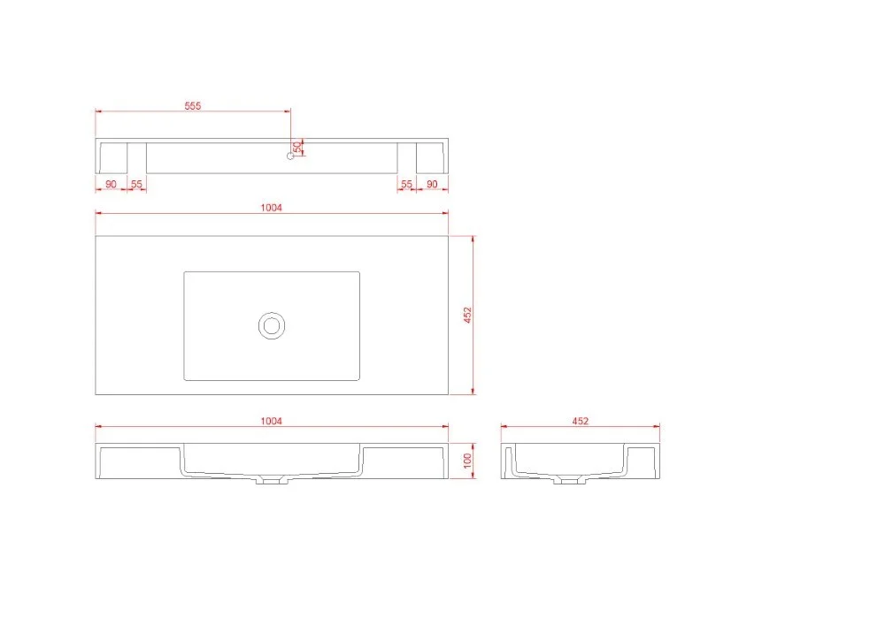 Раковина Armadi Art FLAT ST 100см (1004x452x100) 888-100 с щелевым сливом
