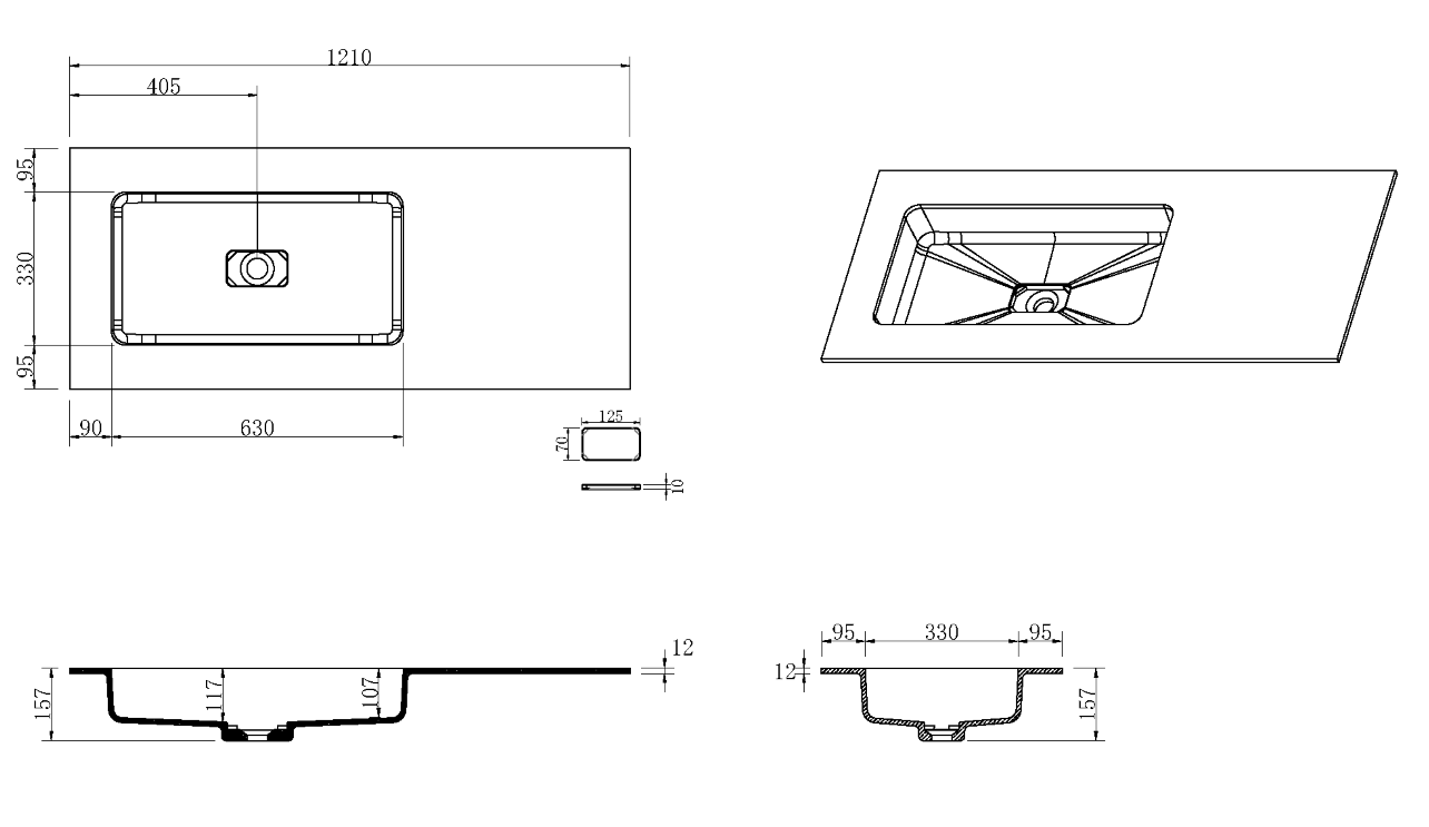 Раковина Armadi Art QUATRO 120 WHITE (чаша слева) 1210x52x12 акрил 793-120-W-L