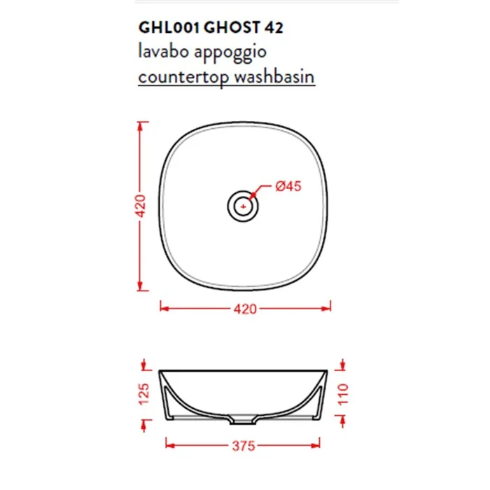 Раковина Artceram Ghost GHL001 01 90