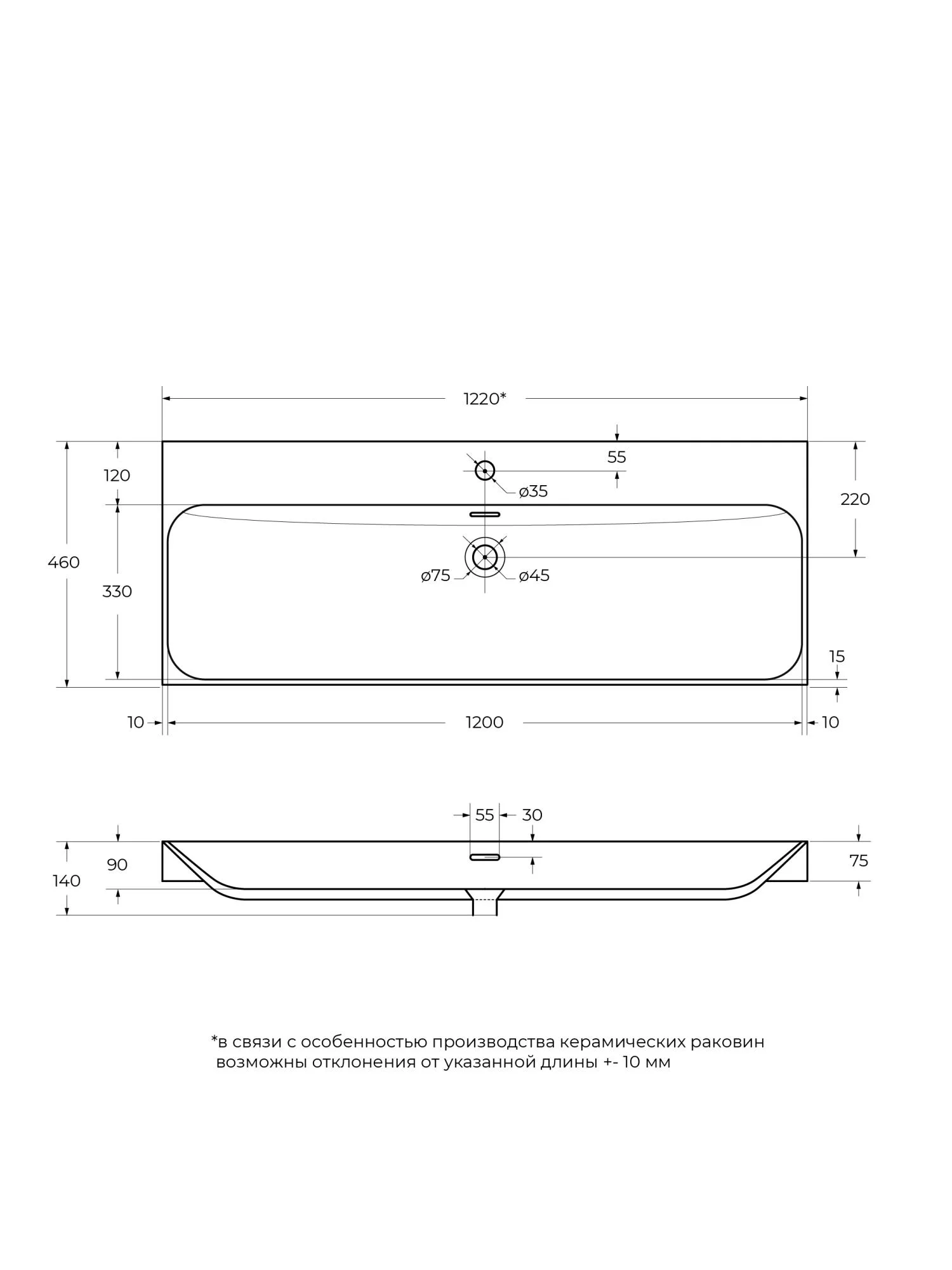 Раковина BelBagno BB-8078-120, 1220x460x140