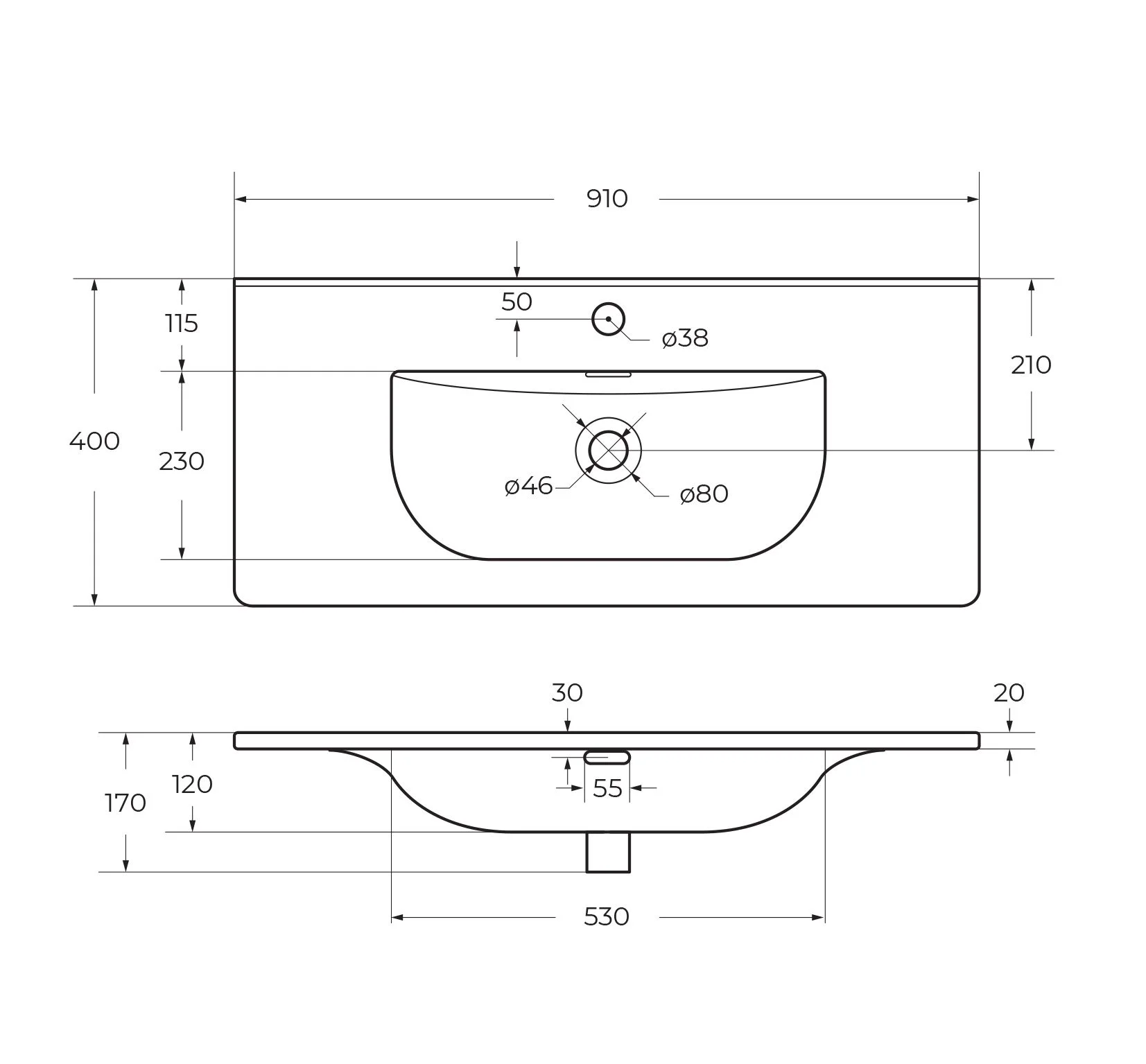 Раковина BelBagno BB-8099-3-90 910x400