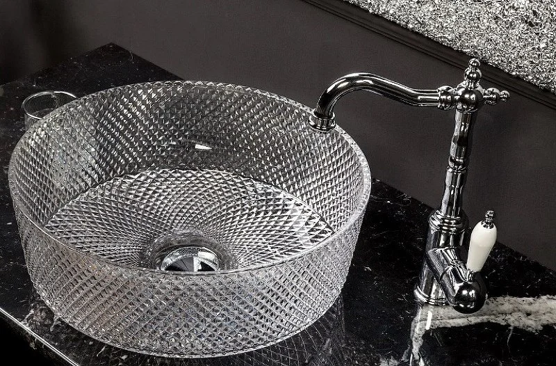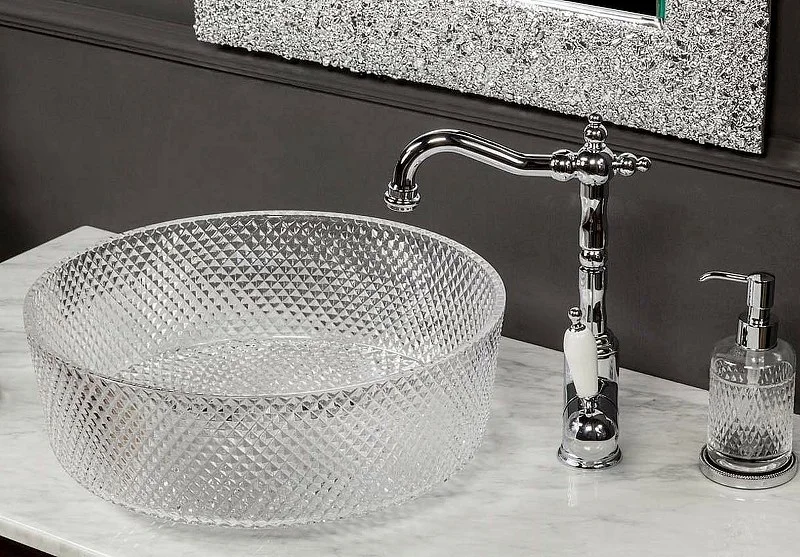 Раковина Boheme 817-S круглая хрустальная серебро 39x12см