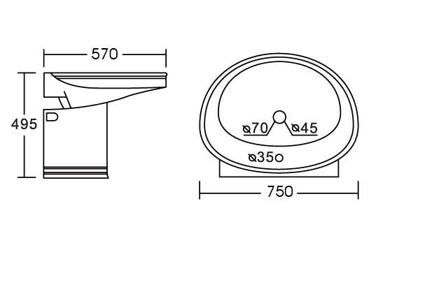 Состоит из двух частей, раковина и пьедестал