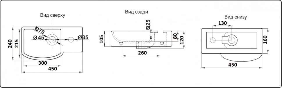 Чаша раковины слева, отверстие под смеситель справа