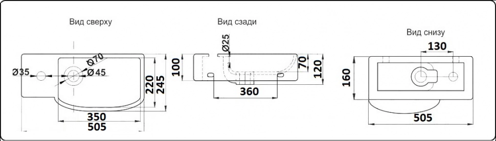 Чаша раковины справа, отверстие под смеситель слева