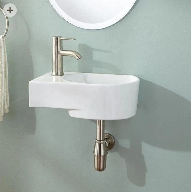Чаша раковины справа, отверстие под смеситель слева