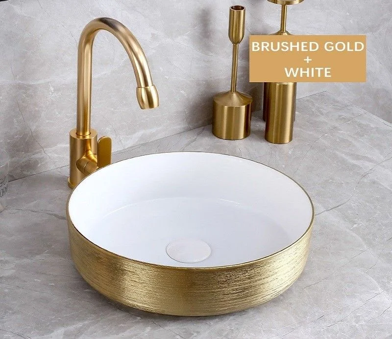 Раковина CeramaLux C1055-1 накладная, белый/золото