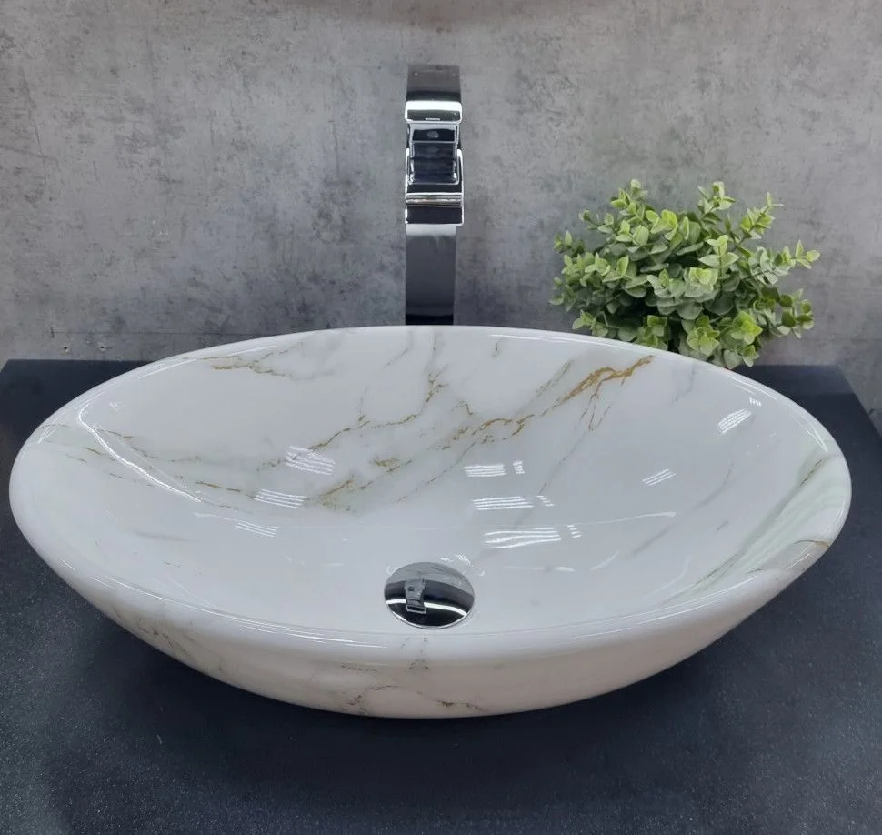 Раковина CeramaLux D1147-505(340) накладная, белый мрамор