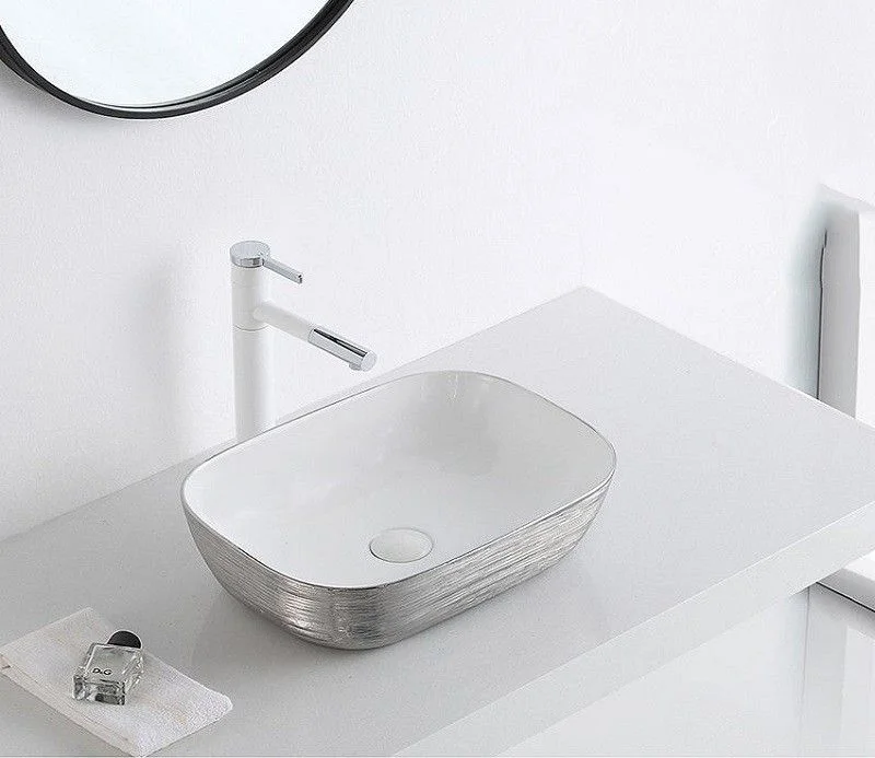 Раковина CeramaLux D1333H131 накладная, белый/серый