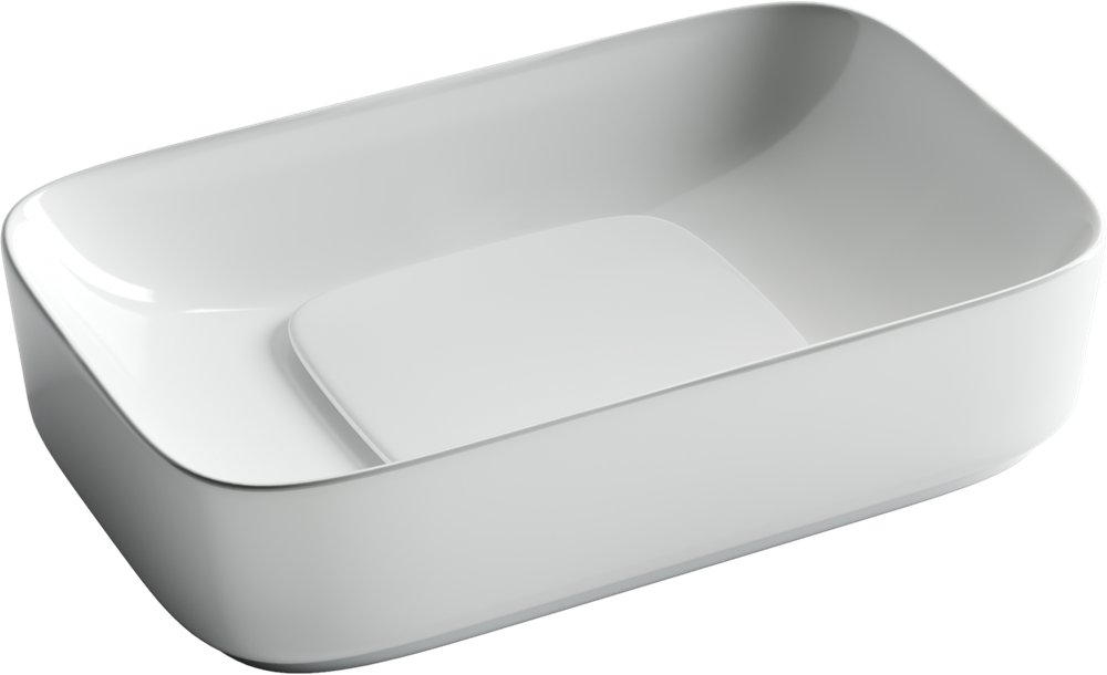 Умывальник чаша накладная прямоугольная с керамической накладкой на сливное отверстие Element 600*375*145мм