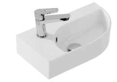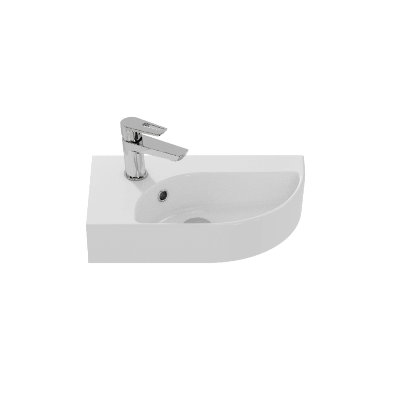 Угловая раковина CAMEO левая размером 45 см. Имеет отверстие под смеситель, а также отверстие перелива. Отлично подходит для маленьких санузлов.
