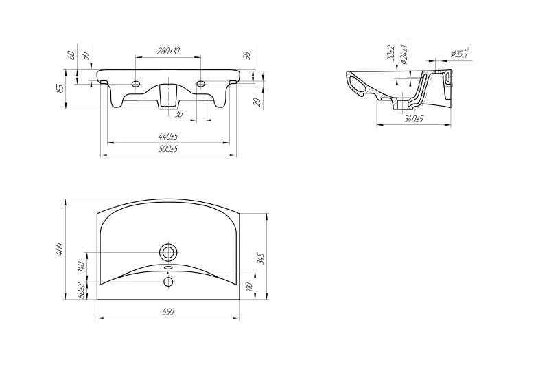 Раковина Cersanit CARINA 55 (UM-CAR55/1) универсальная S-UM-CAR55/1-w