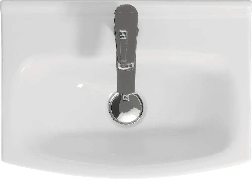 Прямоугольная мебельная раковина CERSANIA, размером 50 см. Имеет отверстие под смеситель, а также отверстие перелива.