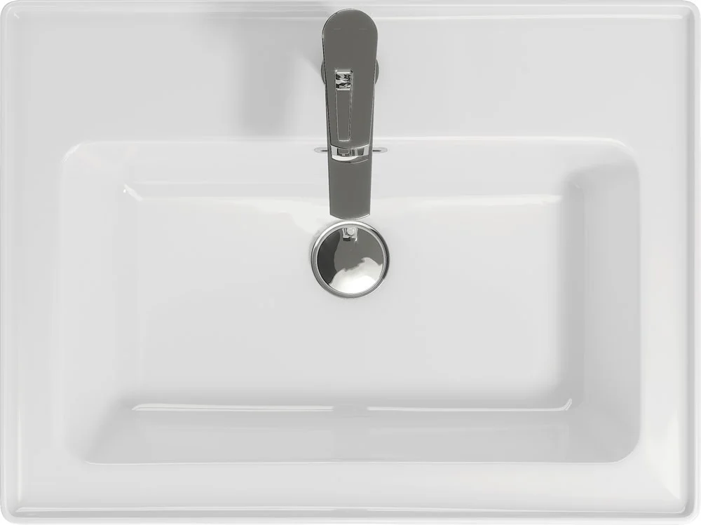 Прямоугольная тонкостенная мебельная раковина CREA с отверстием под смеситель, размером 60 см.