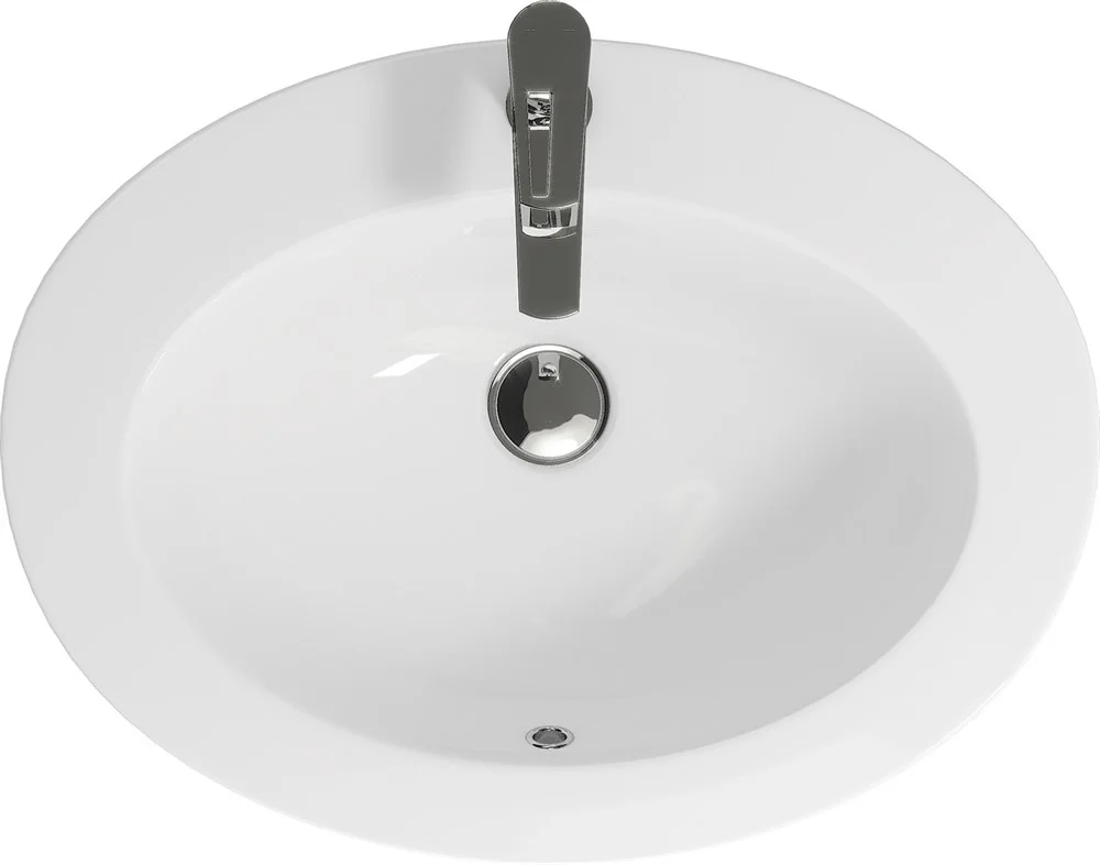 Овальная, накладная раковина на столешницу Gamma с отверстием под смеситель, размером 63 см.