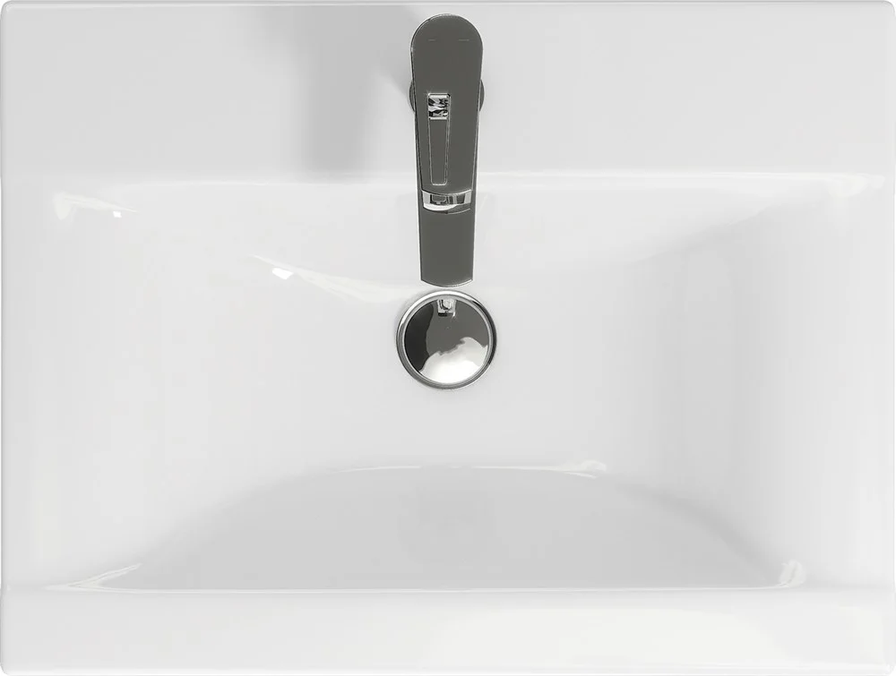 Тонкая раковина Ontario с отверстием под смеситель, размером 60 см. Может устанавливаться на тумбу и на столешницу.