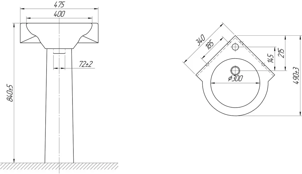 Раковина DIWO Псков 0100 угловая, с пьедесталом 550439