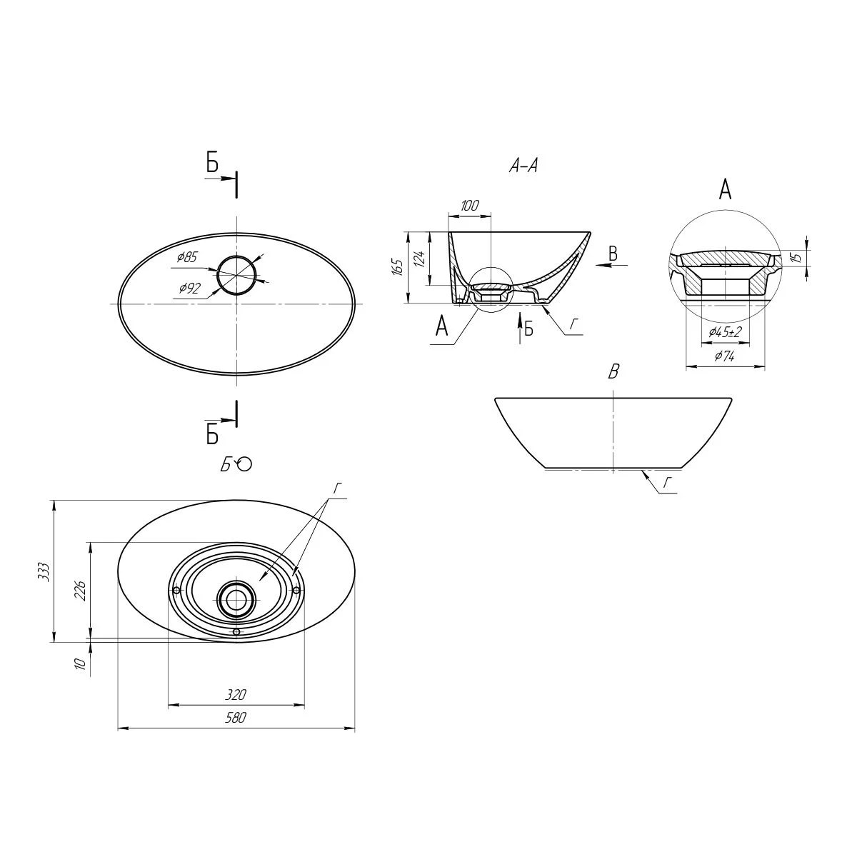 Диаметр слива канализации, мм
