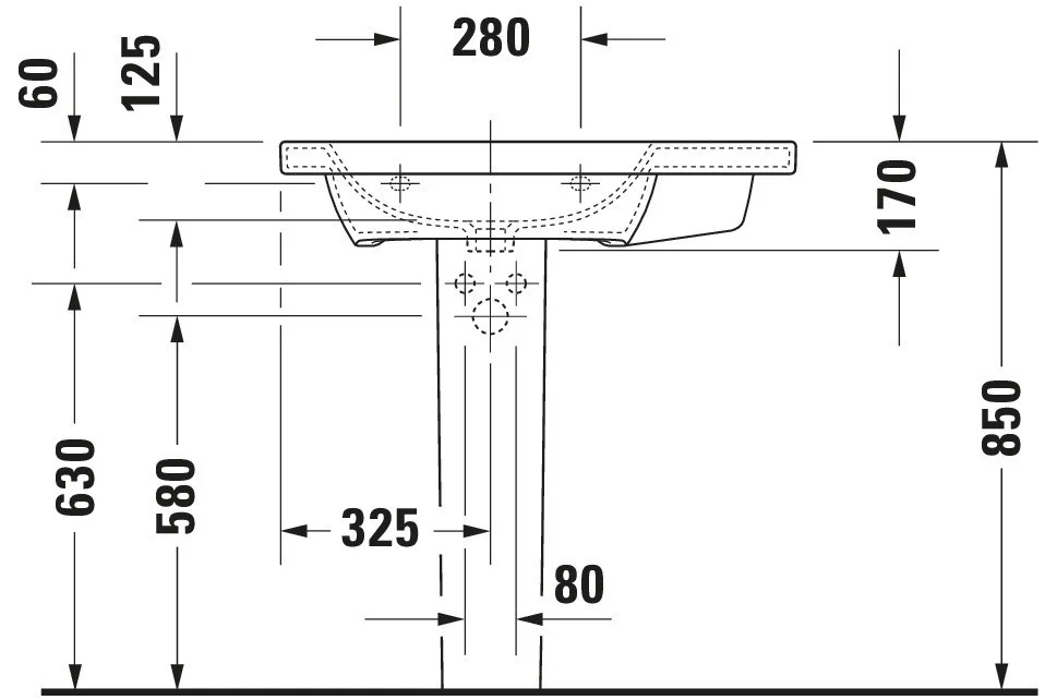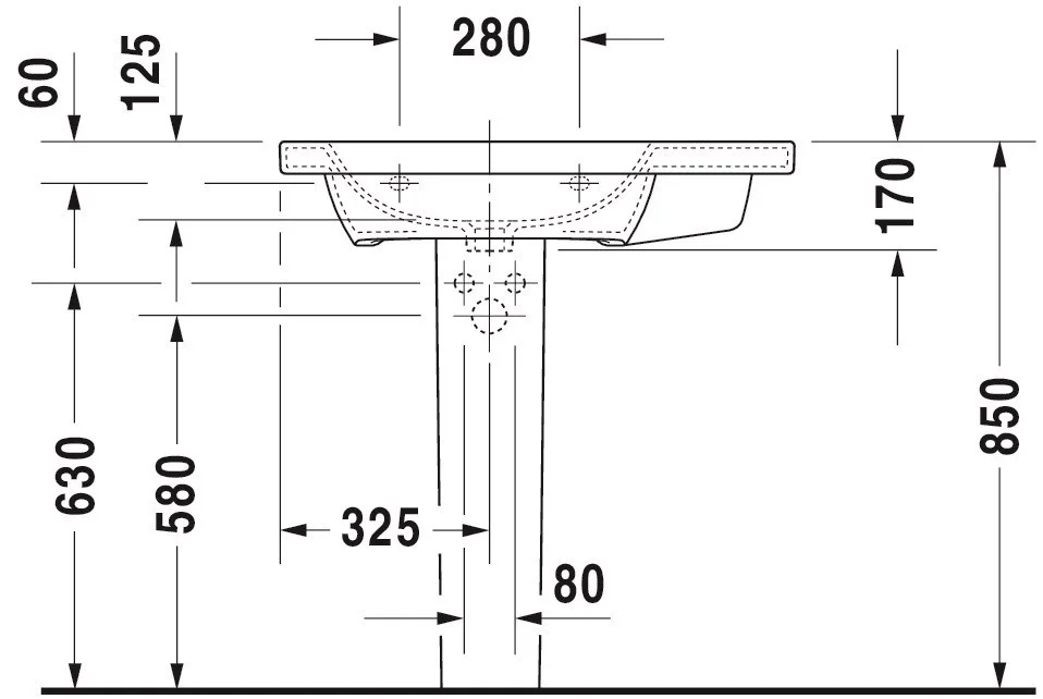 с плоскостью под смеситель, раковина слева, глазуровка снизу, 800 мм