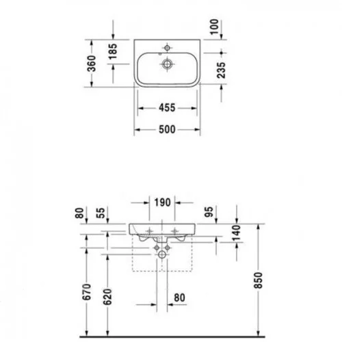 Купить Duravit Happy D.2 Раковина 50х36 см с переливом, включая заглушку для перелива (хром), без отверстия под смеситель, цвет: белый 0710500060 в Москве