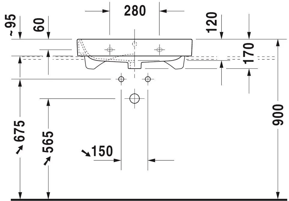 Умывальник с переливом, с отверстием под смеситель, вкл. заглушку для перелива, хром.