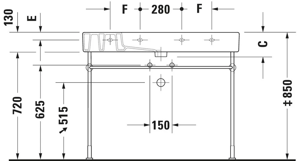 Для монтажа керамики размером от 1000 мм необходимо два комплекта креплений для умывальника.