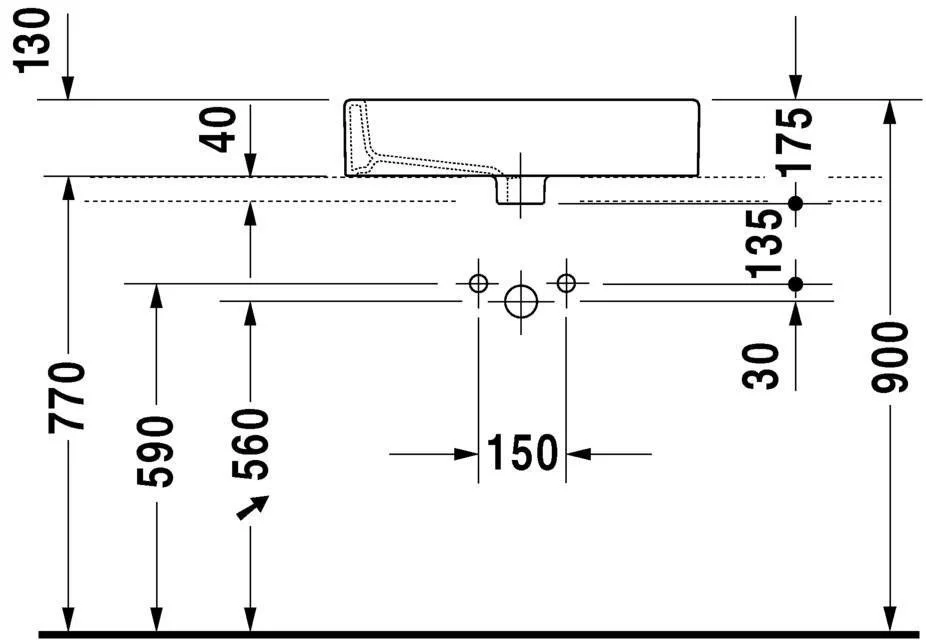 Раковина 60 см Duravit Vero 0452600000 отшлифованные, глазированные с водопроводной платформой, задней стенкой, крепление в комплекте, 595 мм