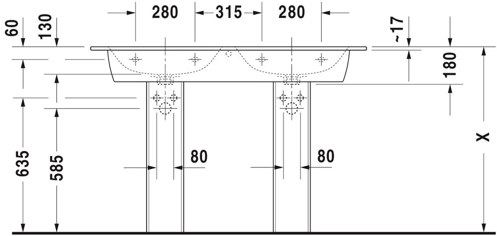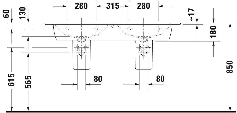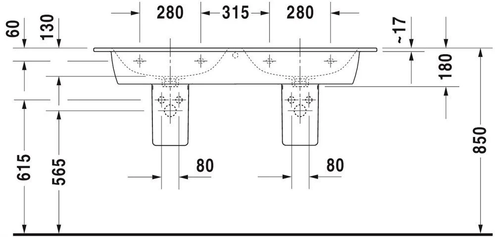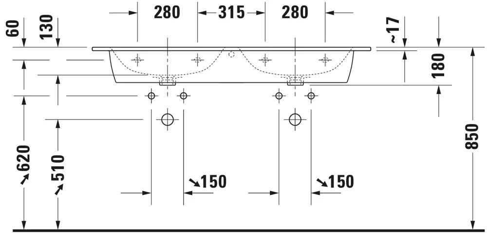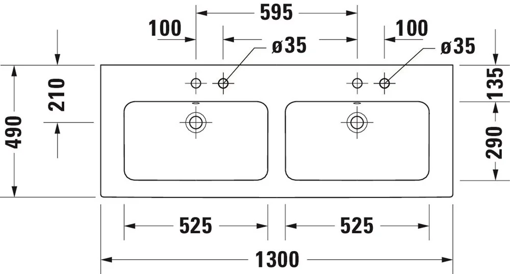 Купить Duravit ME by Starck Двойная раковина для мебели с перел., с 1 отв. под смес., 1300x490мм, Цвет: Белый 2336130000 в Москве