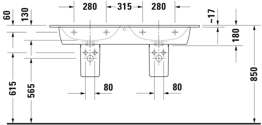Купить Duravit ME by Starck Двойная раковина для мебели с перел., с 1 отв. под смес., 1300x490мм, Цвет: Белый 2336130000 в Москве