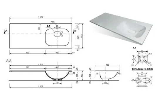 Раковина Эстет Barcelona 120 silk ФР-00014915 правая 1200х480 накладная