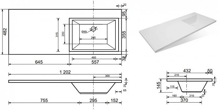 Раковина Эстет Даллас ФР-00001528 правая 1200х480 накладная