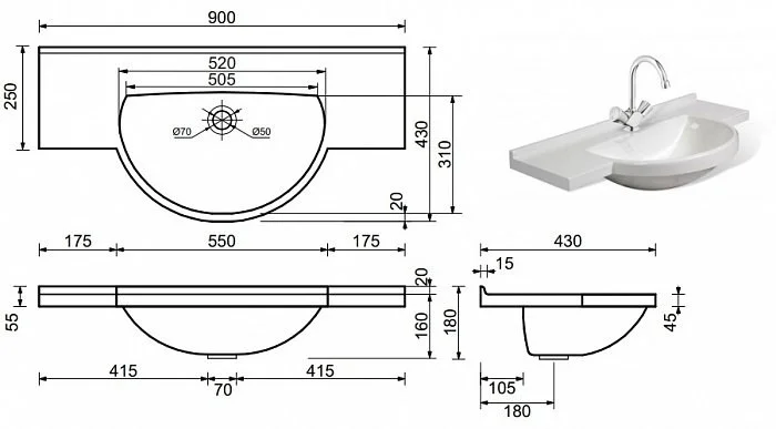 Раковина Эстет Куба ФР-00000783 900х430 накладная
