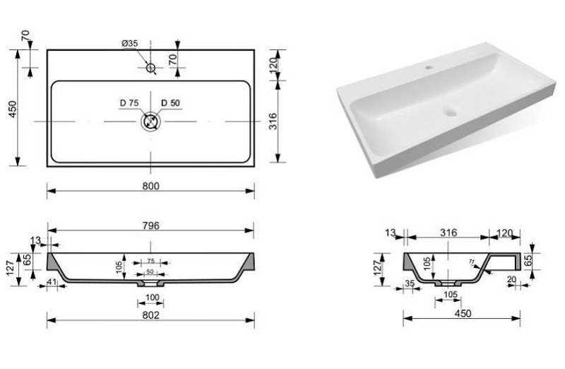 Раковина Эстет Малибу ФР-00006022 800х450 накладная