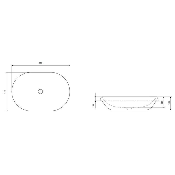 Полувстраиваимая раковина без перелива, без отверстия под смеситель.