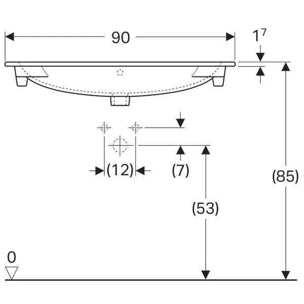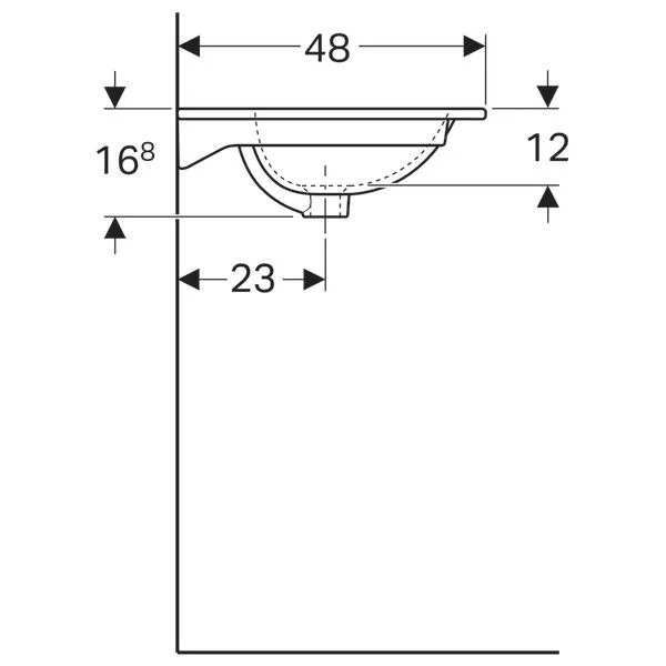 Встраиваемая раковина Keramag Acanto Slim, 900 x 480 мм, с отверстием под смеситель, с переливом,  цвет: белый "Alpine"