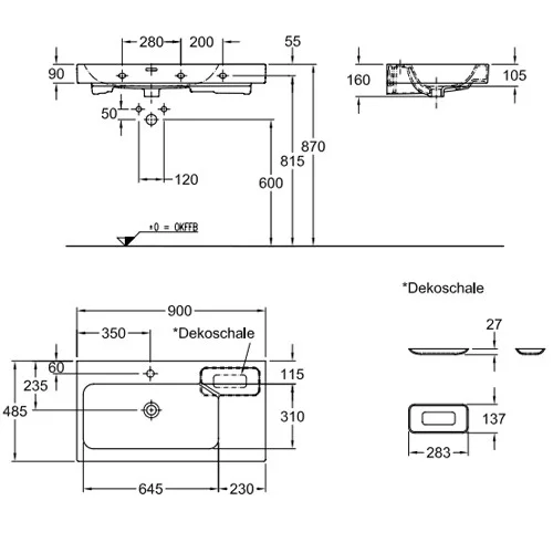 Размер: 90х48,5х15см. Подвесная раковина iCon.