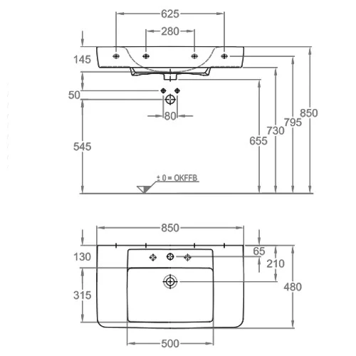 Размер: 85х48х15см. Раковина мебельная Renova.