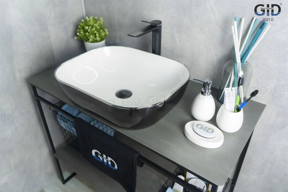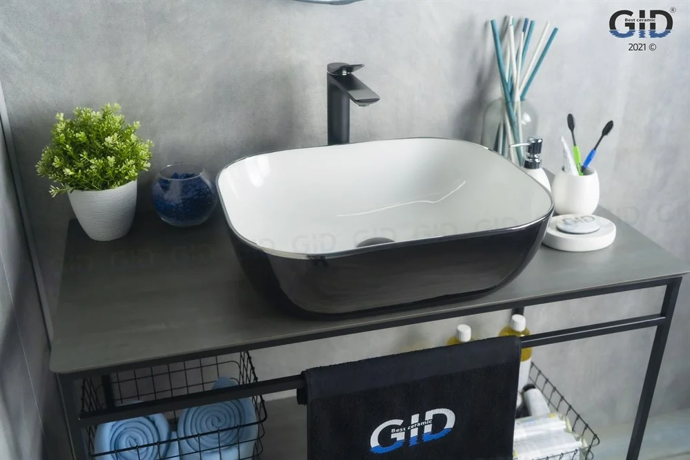 Раковина для ванной Gid D1302h134 монтируется на столешницу или мебель.
