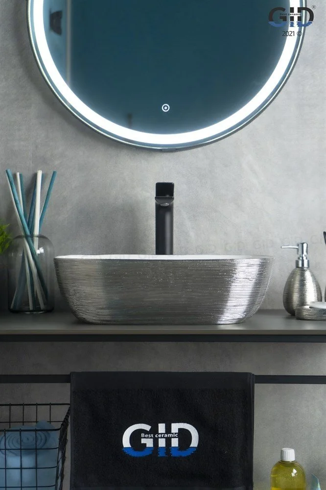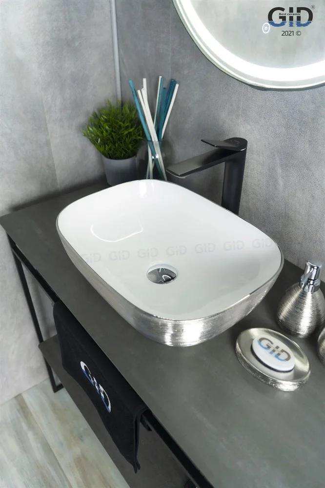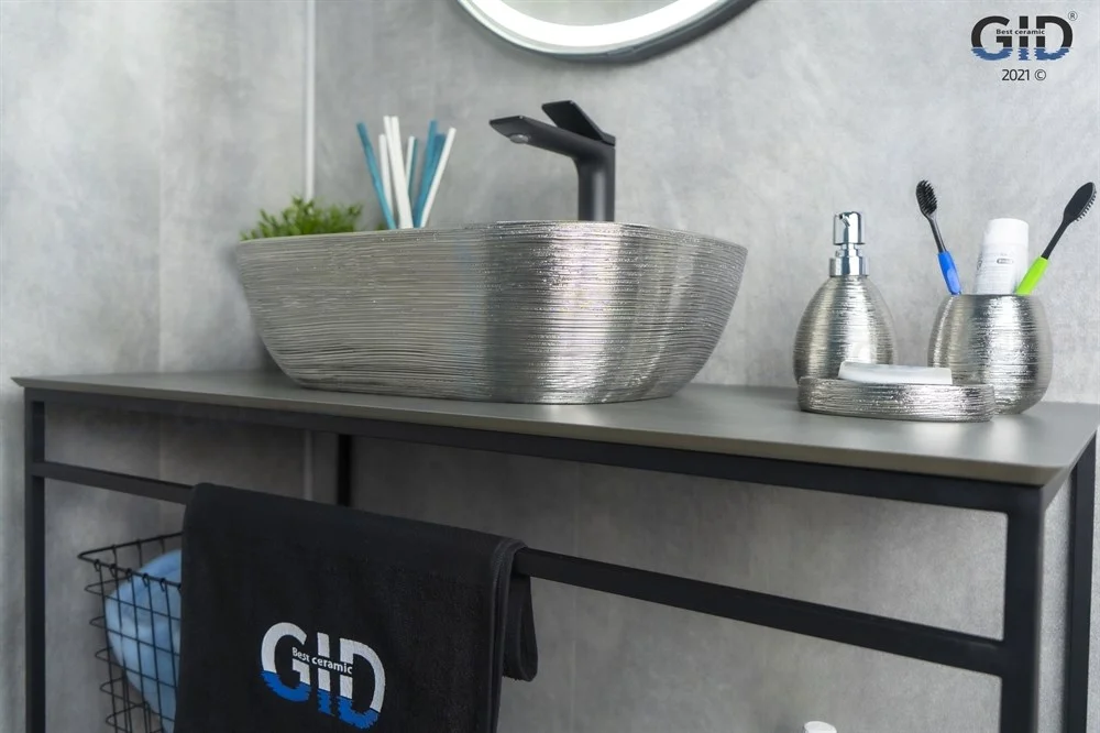 Дизайнерская раковина Gid D1333h131 имеет прямоугольную форму. Чаша покрыта снаружи оригинальной фактурой серебряного цвета и выглядит скорее как часть декора, чем бытовой предмет.