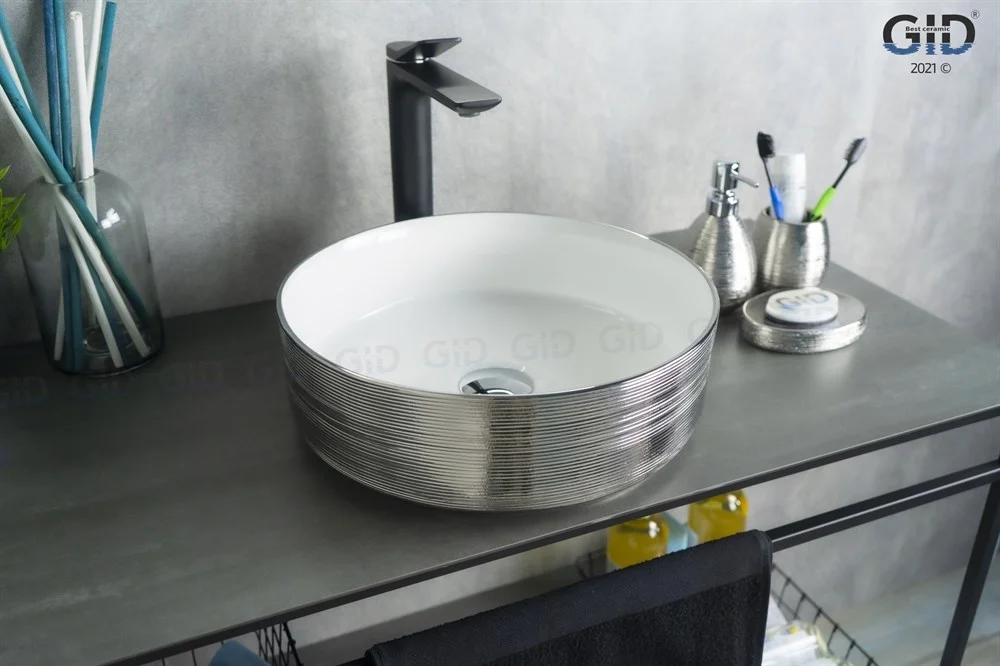 Раковина для ванной Gid D1357h131 монтируется на столешницу или мебель.