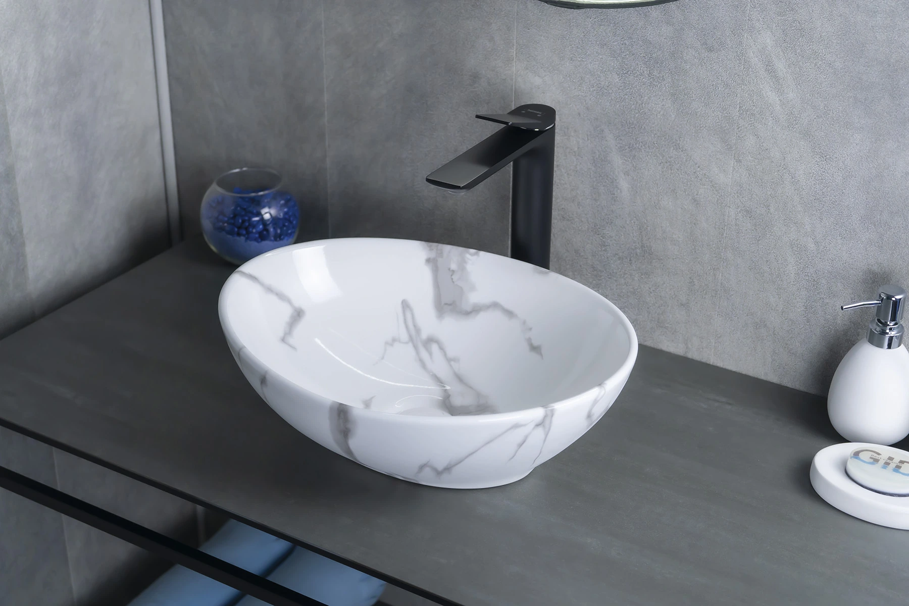 Серия Lago овальной формы — это испанское качество, соответствующее современным европейским требованиям. Раковина накладная GiD Mnc138C — это стильная модель, изготовленная из высококачественной керамики. Она имеет овальную форму, что делает её практичным решением для современных ванных комнат. Дизайн раковины имитирует глянцевую поверхность натурального камня, придавая интерьеру элегантность и утончённость. Раковина устанавливается накладным способом на столешницу, что подчёркивает её современный стиль. Благодаря отсутствию отверстия под смеситель раковина позволяет реализовать различные дизайнерские решения по размещению смесителя. Раковина предназначена для бытового использования и гармонично впишется в любой интерьер ванной комнаты.