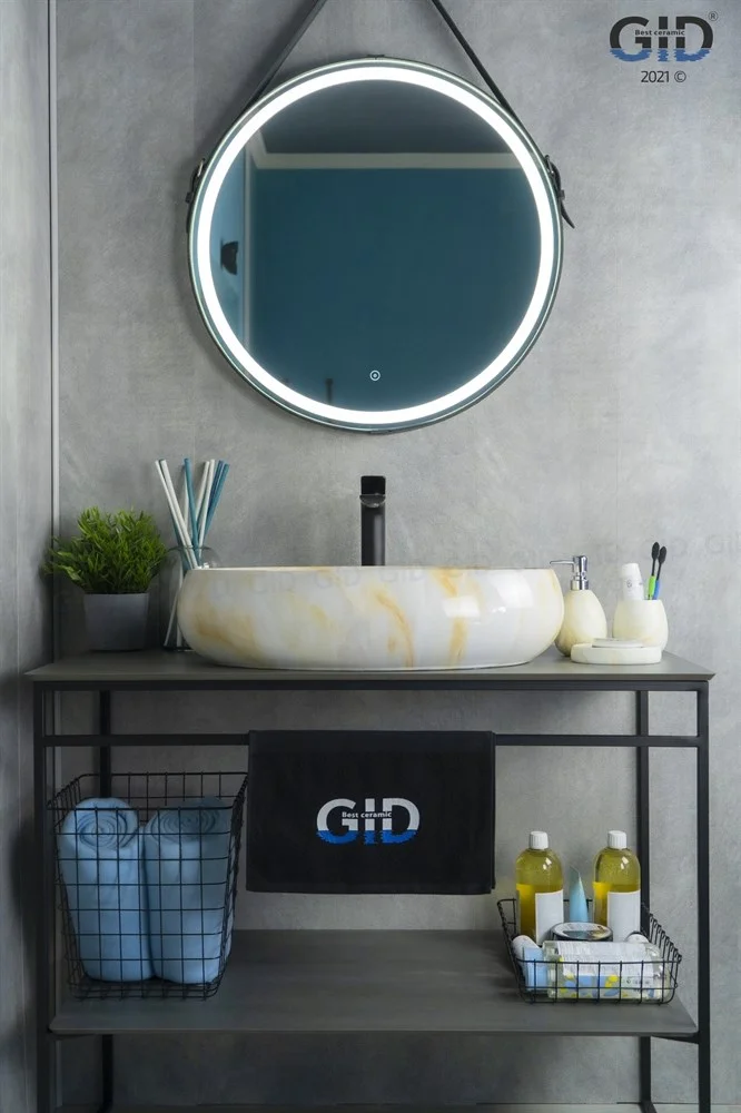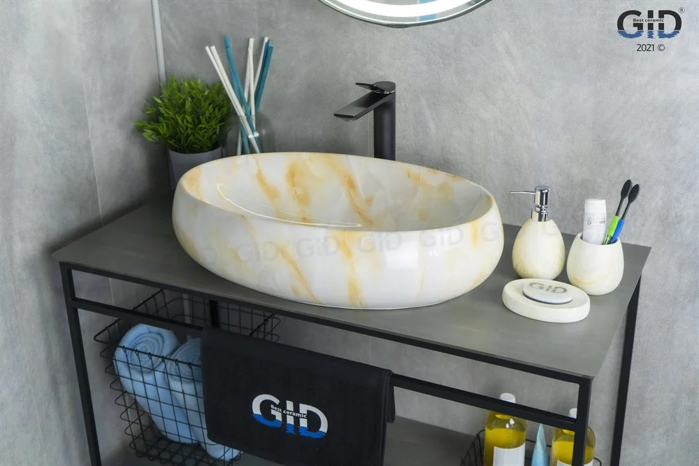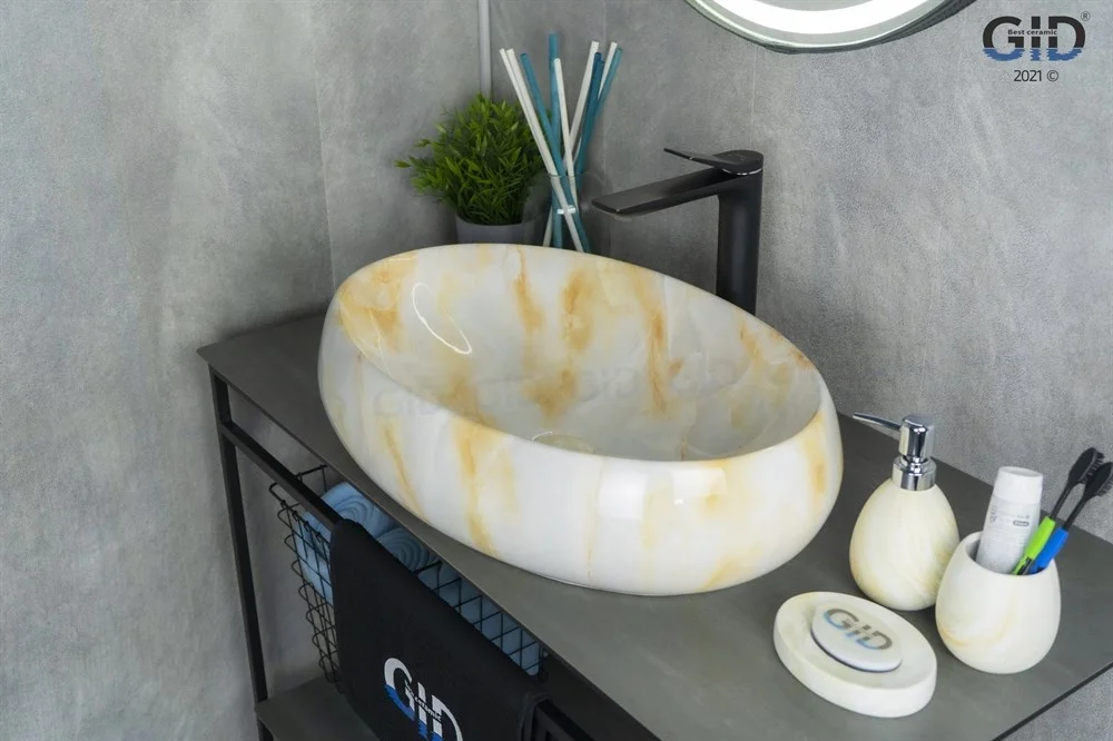 Раковина для ванной Gid Mnc166 монтируется на столешницу или мебель.